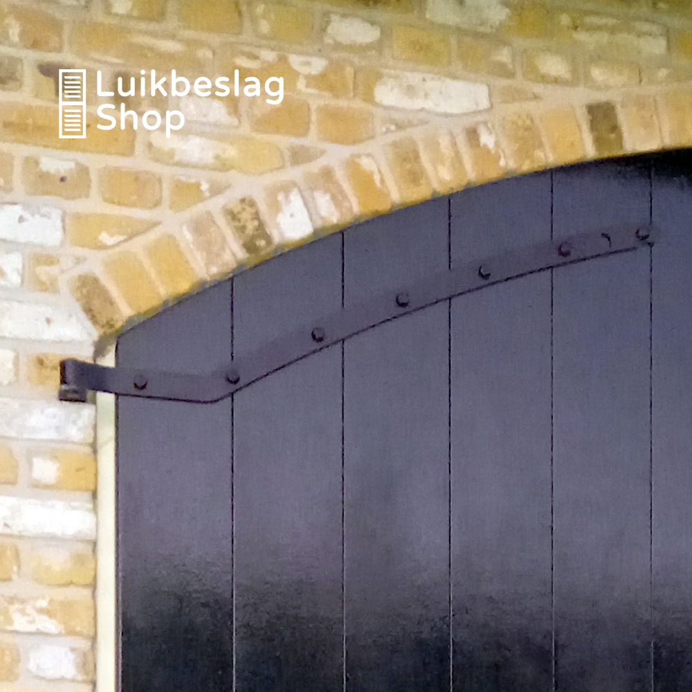 Hengen voor getoogde luiken: Is de bovenkant van uw luik getoogd (rond) dan kunnen wij hiervoor ook de hengen maken. U geeft ons een mal of een straal van de toog door en wij maken een productietekening.
