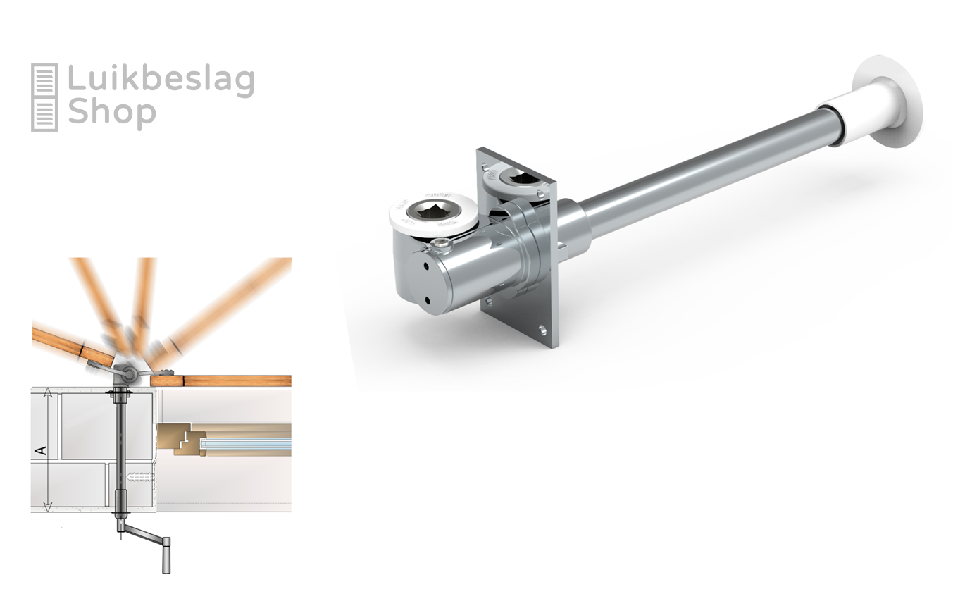 Deze bediening is robuust en ook bij grote en zware luiken toe te passen. De aandrijving is zelfremmend dus een middensluiting is niet nodig.