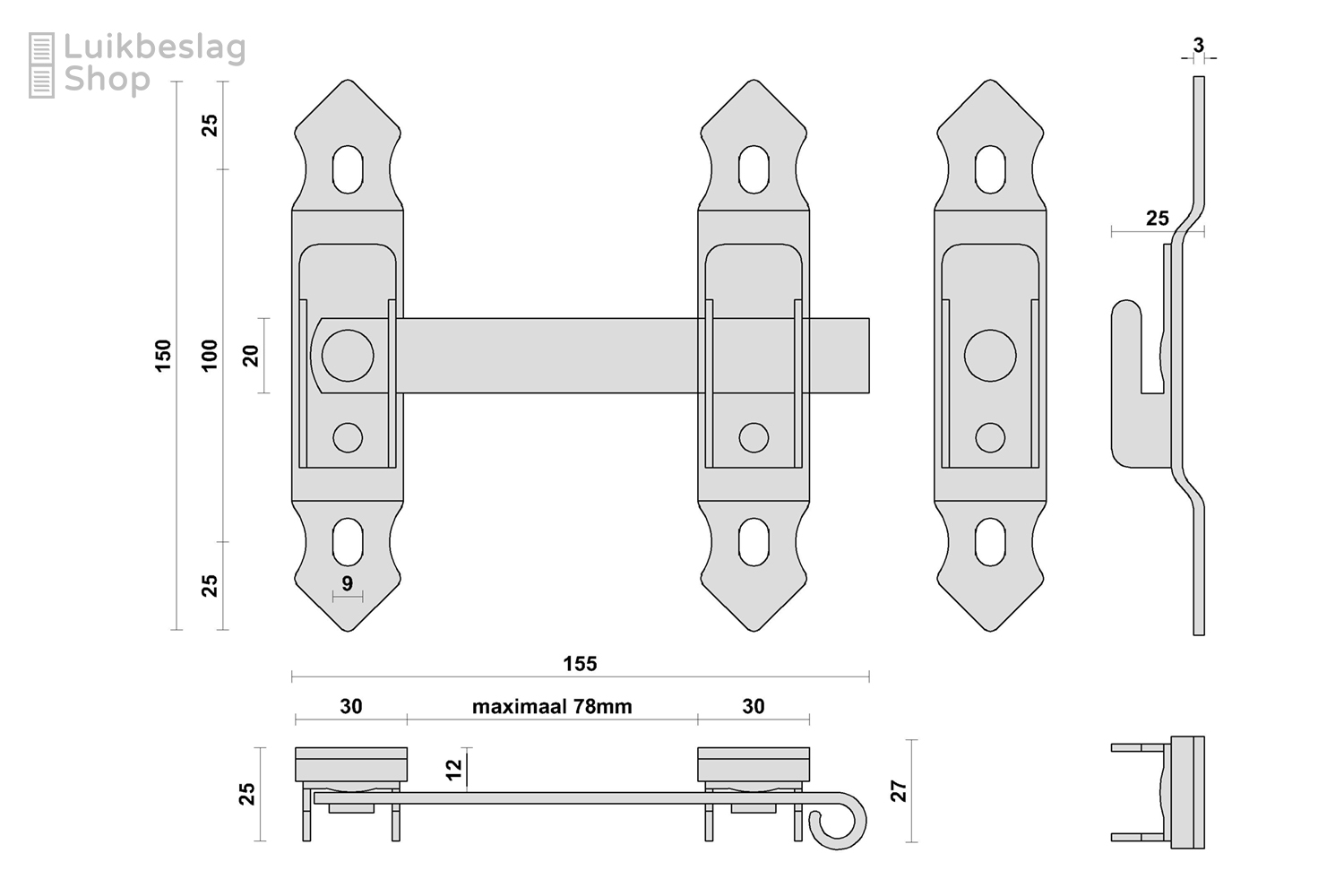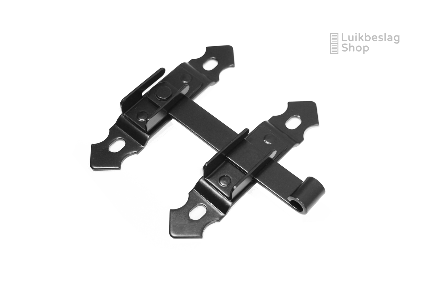 Meer informatie: De hoogte van deze Oudhollandse luiksluiting is ca 26/27mm en dus goed toe te passen bij vouwluiken of bij muurmontage. Bij deze sluiting kan een sluitlat van maximaal 12mm dik worden gebruikt. Montagemateriaal: Er moeten 4 houtdraadbouten worden gebruikt om de sluiting te monteren. Het mooiste is natuurlijk om de rvs zwarte houtdraadbouten en beschermringetjes te gebruiken. Informatiecentrum. Kijk voor meer informatie en montagemogelijkheden in het informatiecentrum hier.