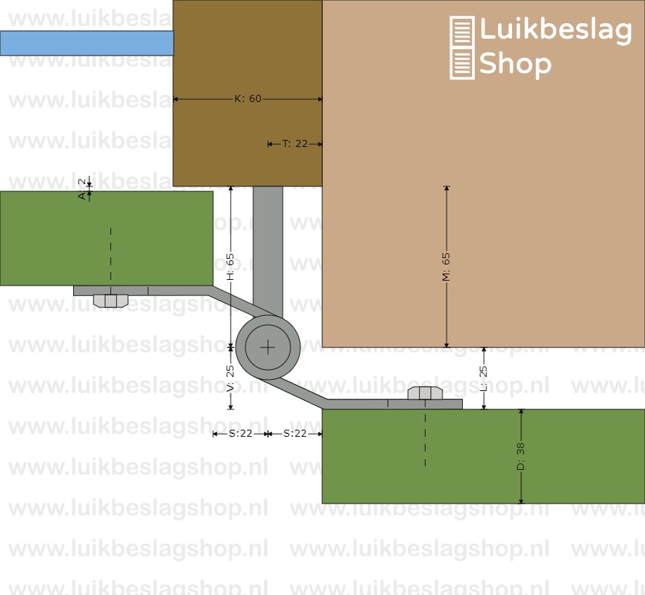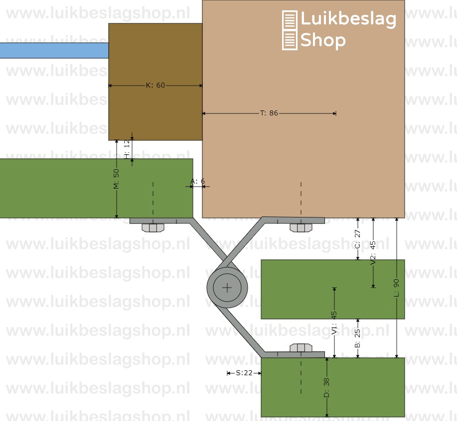 Om beschadigingen van de poedercoat te voorkomen is het aan te bevelen een kunststof beschermringetje te gebruiken onder de houtdraadbout of slotbout. De hengen zijn door de vorm van de gaten enkele millimeters verticaal te verstellen.