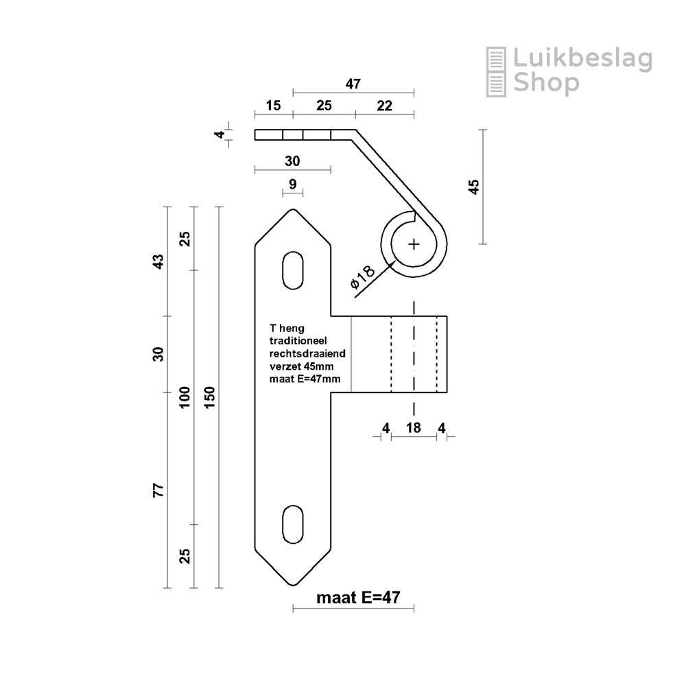 De montagegaten van deze traditionele T hengen zijn 9mm. Er kunnen M8 houtdraadbouten of slotbouten worden gebruikt om de hengen te monteren.